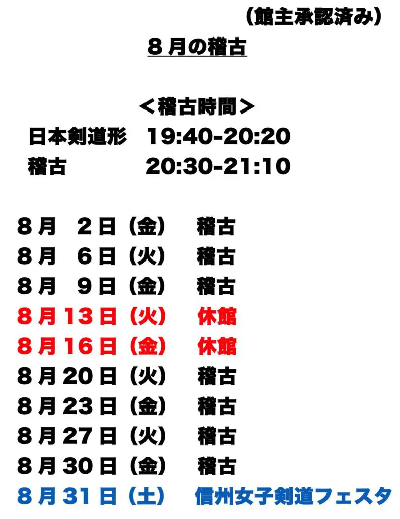 稽古を中止する場合もあります。